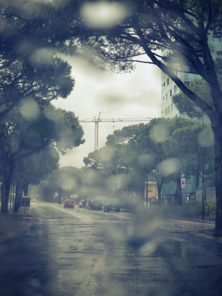 Jesolo, la “Miami del Nordest” invasa dalla pioggia. Frotte di bengalesi e indiani spauriti, con le biciclettine in cerca di un riparo. Porsche come se piovesse scivolano silenziose mentre addento la mia piada tiepida, il gestore del bar è di sicuro omosessuale (mentre lo penso, una sorta di censura mi fa sentire in colpa, acuendo quel loop da società repressa di cui soffriamo ormai un po’ tutti). La musica è caraibica, arriva un camion di muratori albanesi. Entrano, si scolano delle chine liscie in silenzio e ripartono, oggi giornata persa.